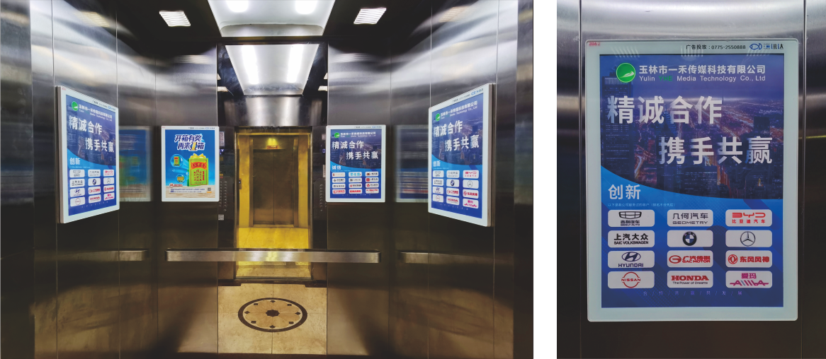 封闭狭小空间,不管是精美的框架、门贴还是声图并茂的电子屏都近在眼前,不得不看。