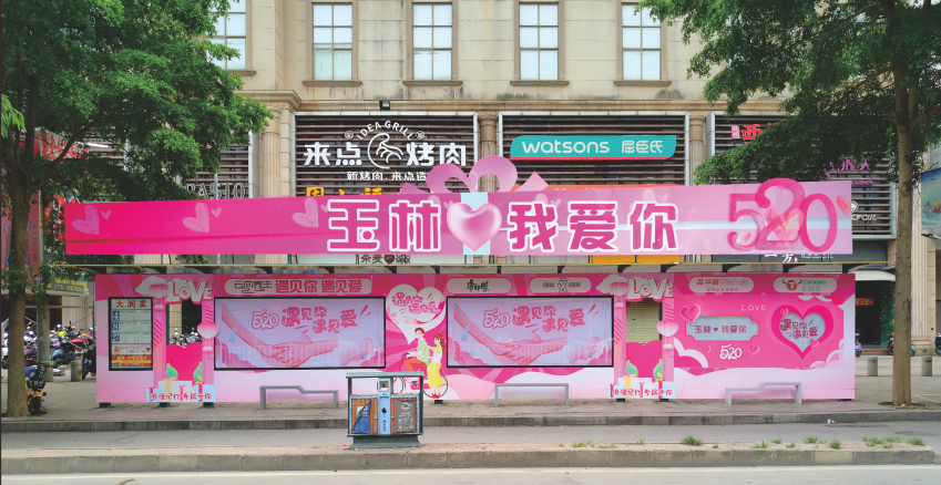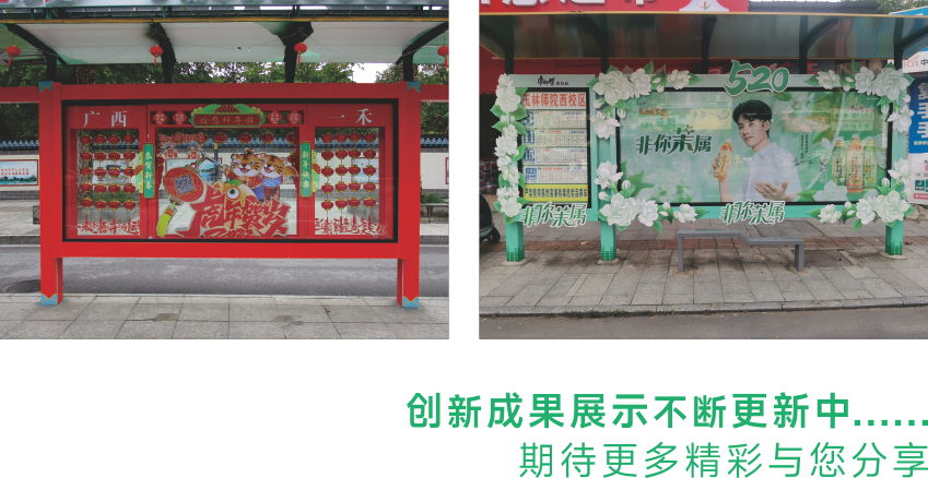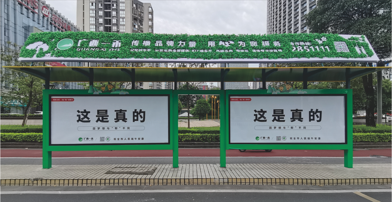 BRT候车亭(洋河酒业),利用其独特的外观,结合瓶身的造型设计而成,并成功地将商品信息传递出来,清晰醒目,完成形与意的完美转换。